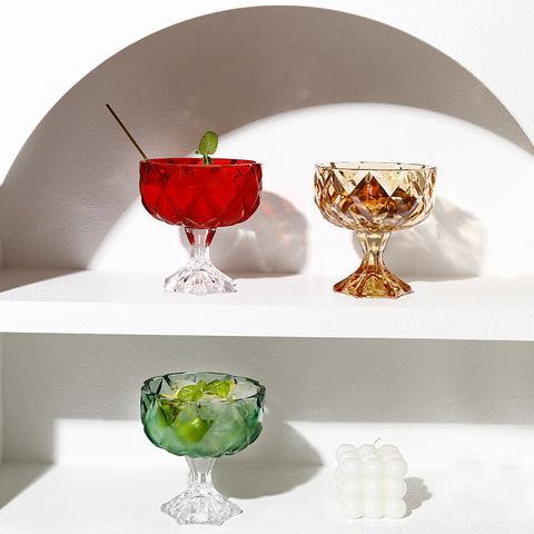 Vaso de vidrio de diseño europeo de lujo, taza de postre creativa para batido, fruta, helado, jugo, ensaladera